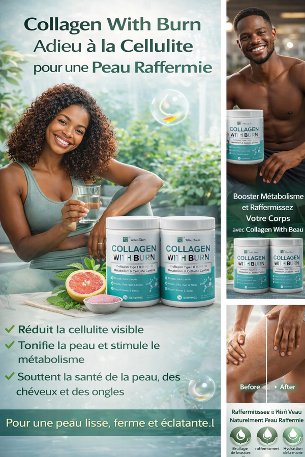 Le Collagen + brûlage des graisses est un supplément innovant alliant les bienfaits du collagène avec un effet brûleur de graisses. Combinant les types de collagène I, II, III, V et X, il soutient la santé de la peau, des cheveux, des ongles, ainsi que des articulations et des os. Ce produit est spécialement conçu pour contrôler la cellulite, favoriser un métabolisme actif, et offrir une peau plus ferme et plus tonique.