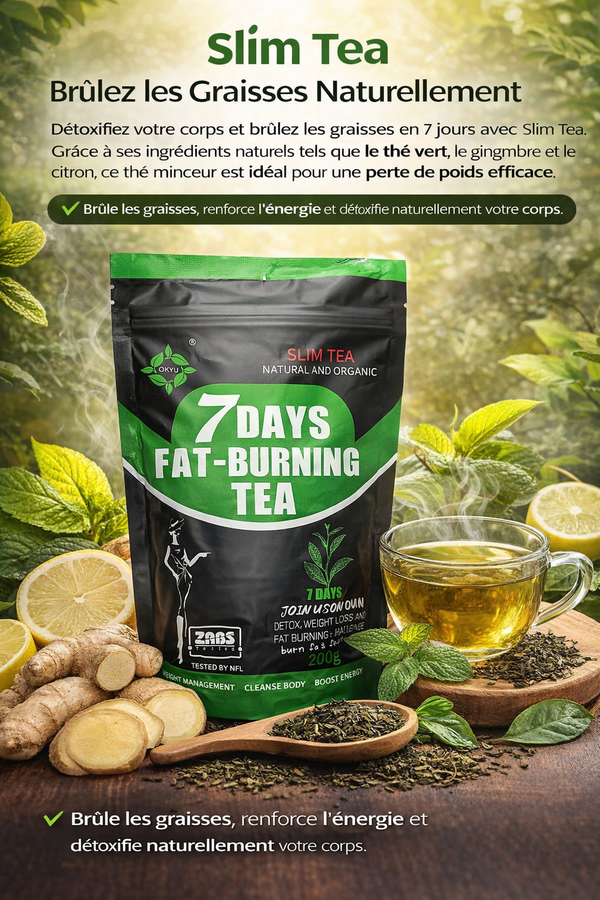 Le Thé minceur est un allié puissant pour votre gestion du poids. Ce Thé minceur doté des propriétés détoxifiantes, vous aide à brûler les graisses en 7 jours, et favorise une perte de poids saine et stimule le métabolisme pour des résultats durables. Intégrez-le à votre routine et retrouvez un corps plus sain et plus léger!